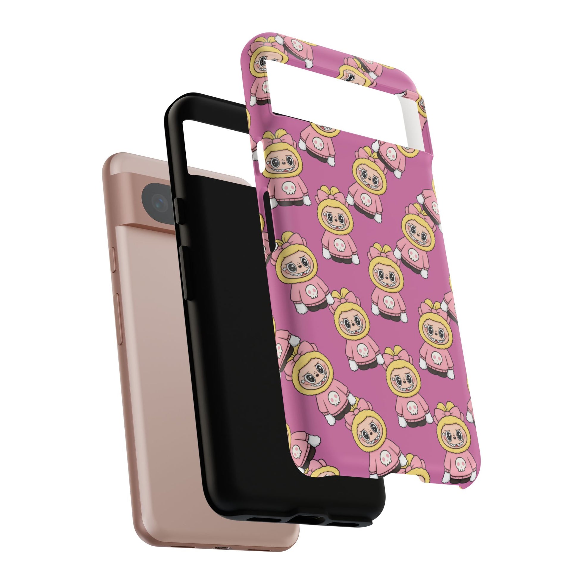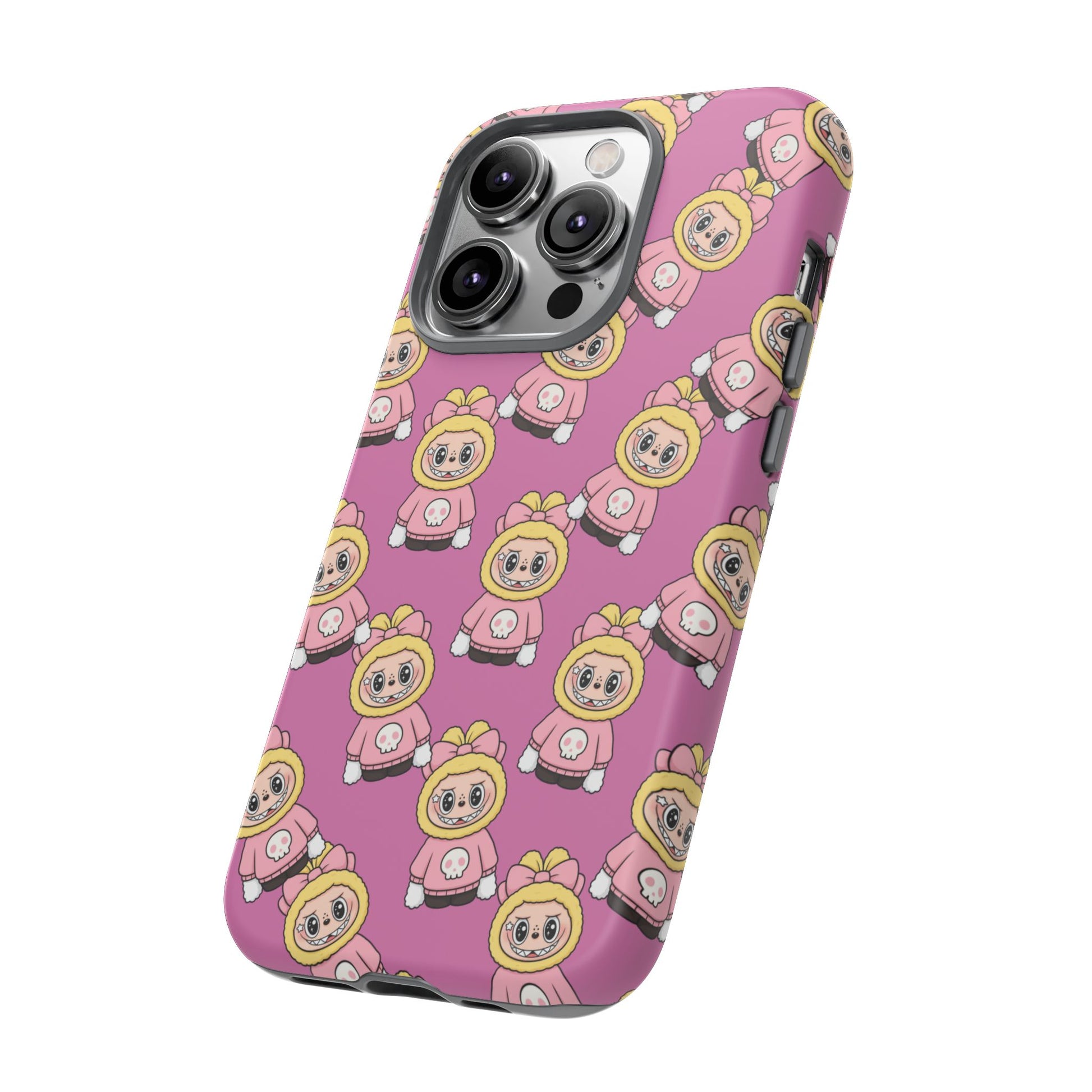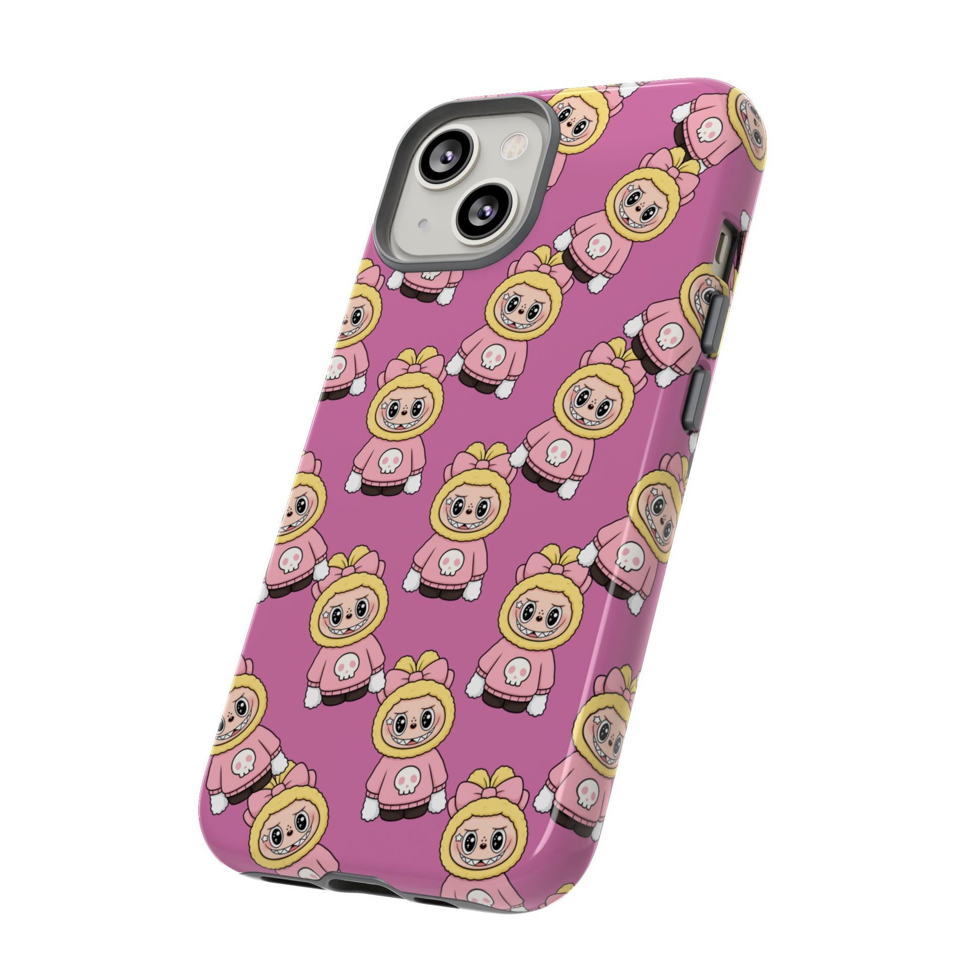 Wrap your phone in playful attitude with this tough protective case. The design blends candy-pink cuteness with an edge — a grinning character in a fluffy hood and skull sweater that reads both whimsical and spirited. The dual-layer shell and silicone liner absorb shocks while the full-wrap printing keeps the illustration vibrant from edge to edge. Lightweight and precise, it keeps ports clear and supports wireless charging so your routine stays smooth. Built for everyday knocks and bright personalities, this case keeps your device safe without hiding your style.