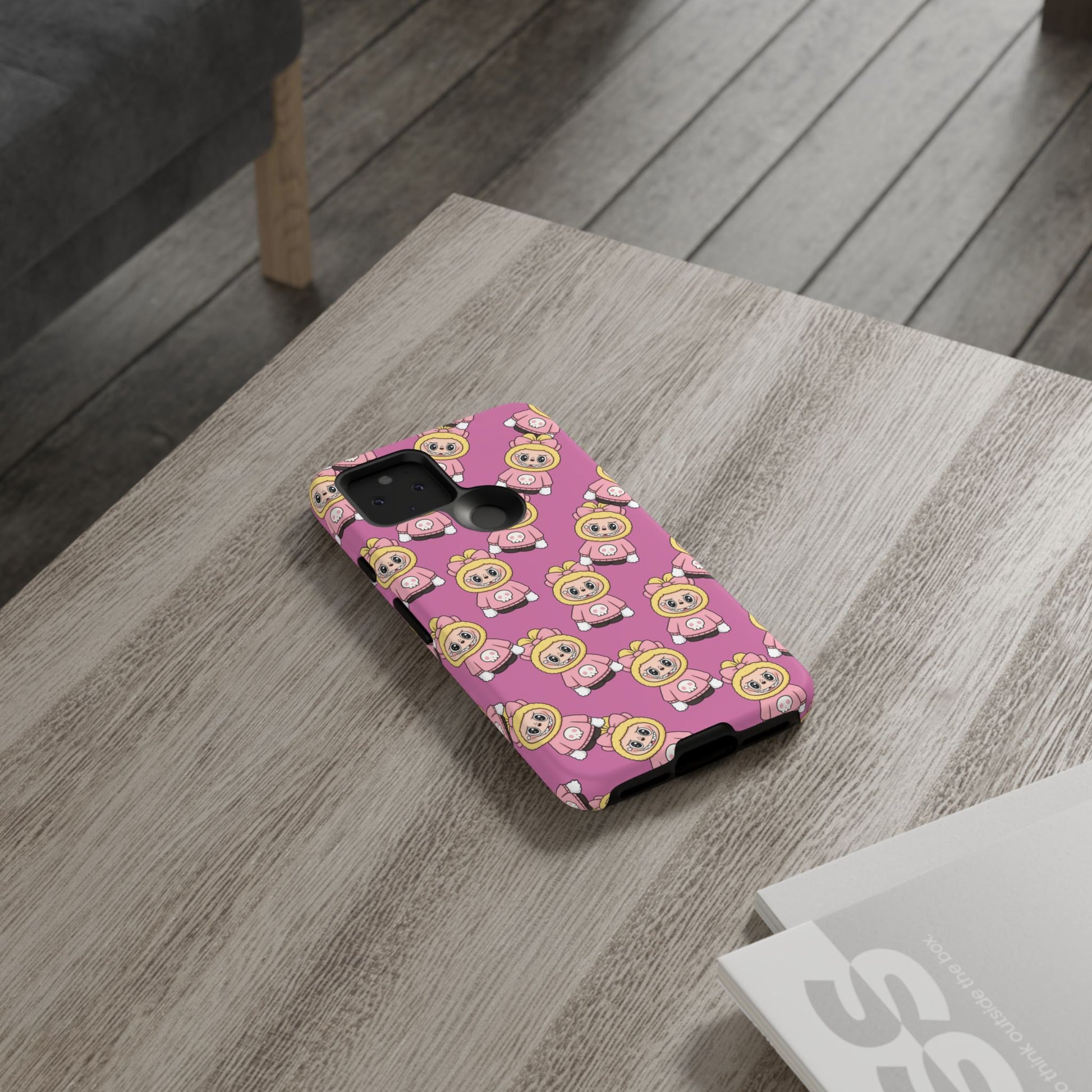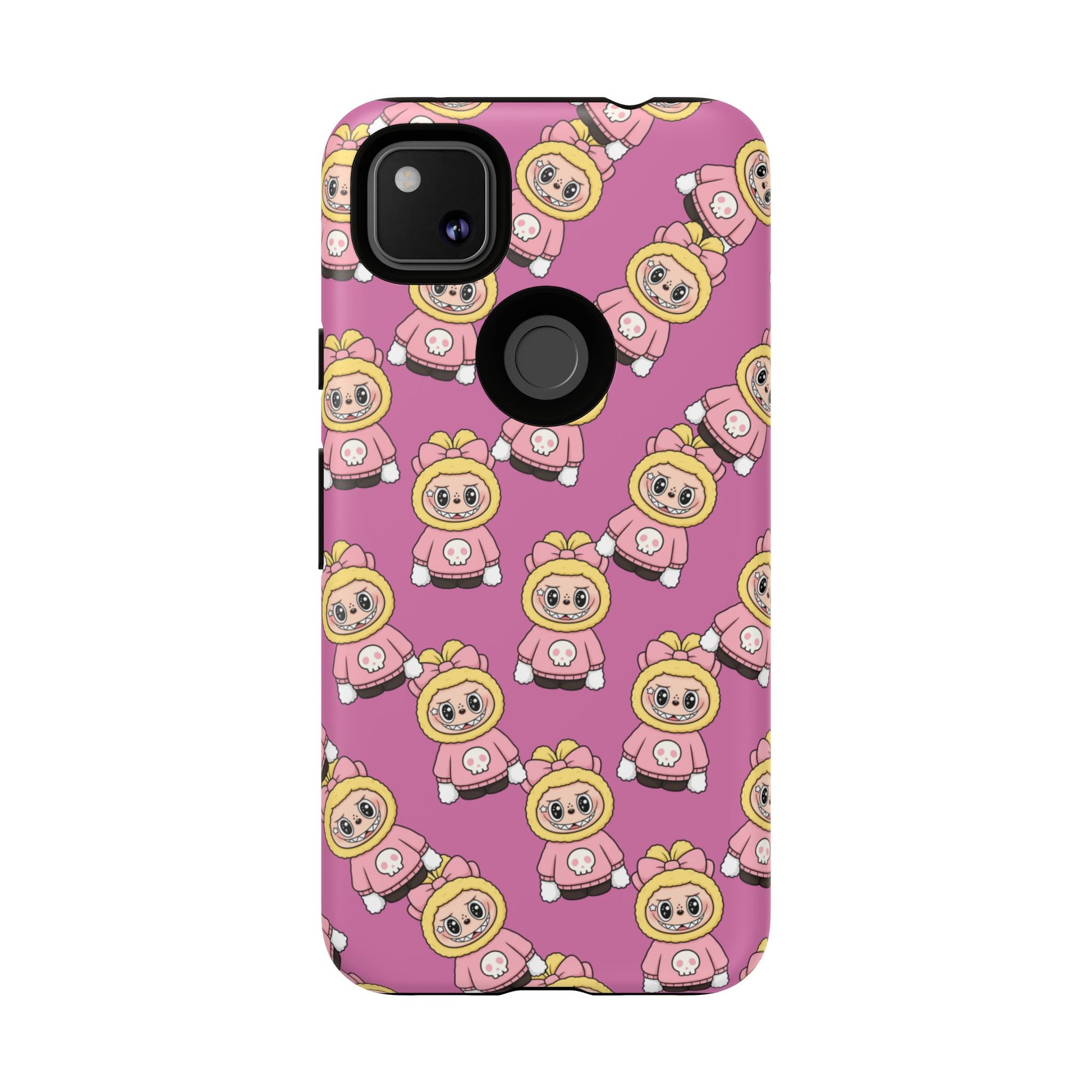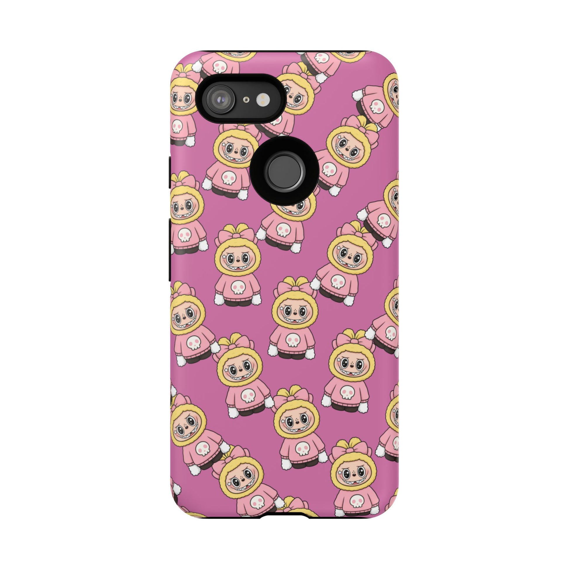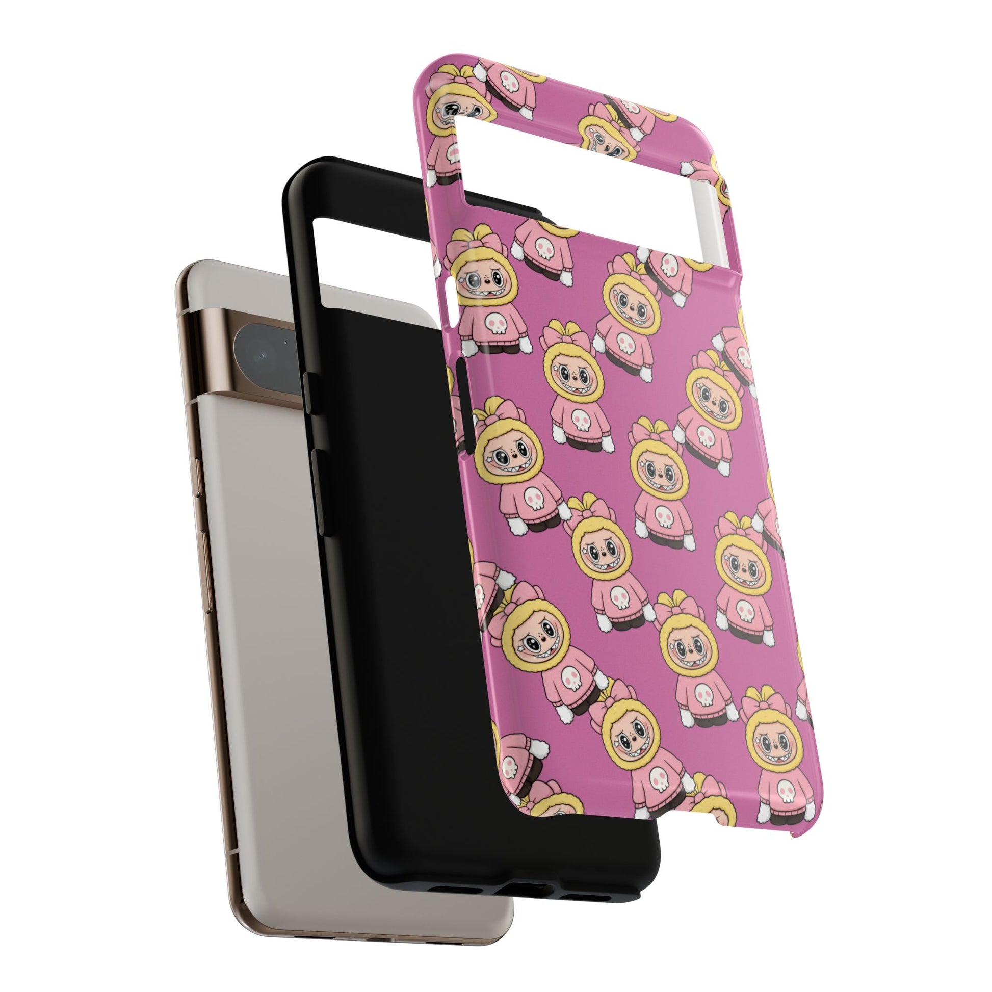Wrap your phone in playful attitude with this tough protective case. The design blends candy-pink cuteness with an edge — a grinning character in a fluffy hood and skull sweater that reads both whimsical and spirited. The dual-layer shell and silicone liner absorb shocks while the full-wrap printing keeps the illustration vibrant from edge to edge. Lightweight and precise, it keeps ports clear and supports wireless charging so your routine stays smooth. Built for everyday knocks and bright personalities, this case keeps your device safe without hiding your style.