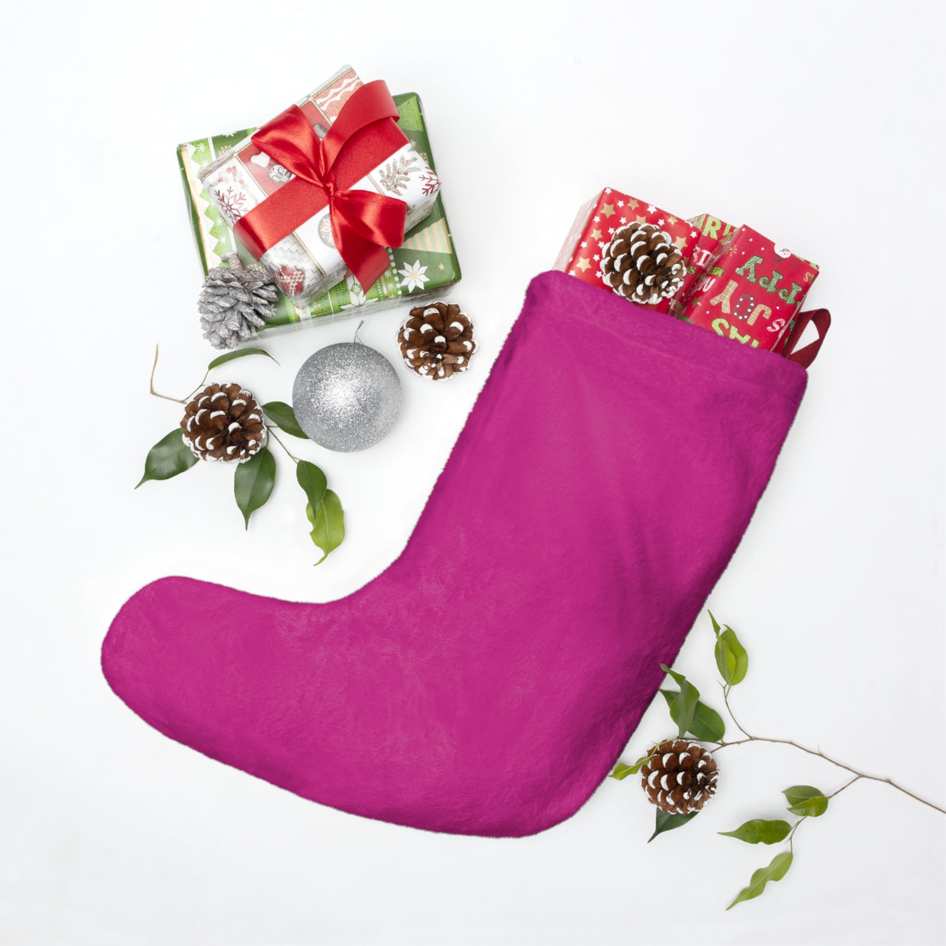 Wrap the holidays in playful warmth with this plush Christmas stocking. The vibrant magenta fleece and repeating whimsical character print bring a cheerful, childlike energy to any mantel. The soft, thick polyester fleece feels cozy to the touch and holds its shape while offering plenty of room for treats and surprises. A stitched twill loop makes hanging easy, and reinforced overlocked seams keep the stocking looking fresh year after year. Assembled in the USA from globally sourced parts, this stocking adds a bright, joyful accent to seasonal decorating — the kind that invites giggles and brightens a quiet winter morning.