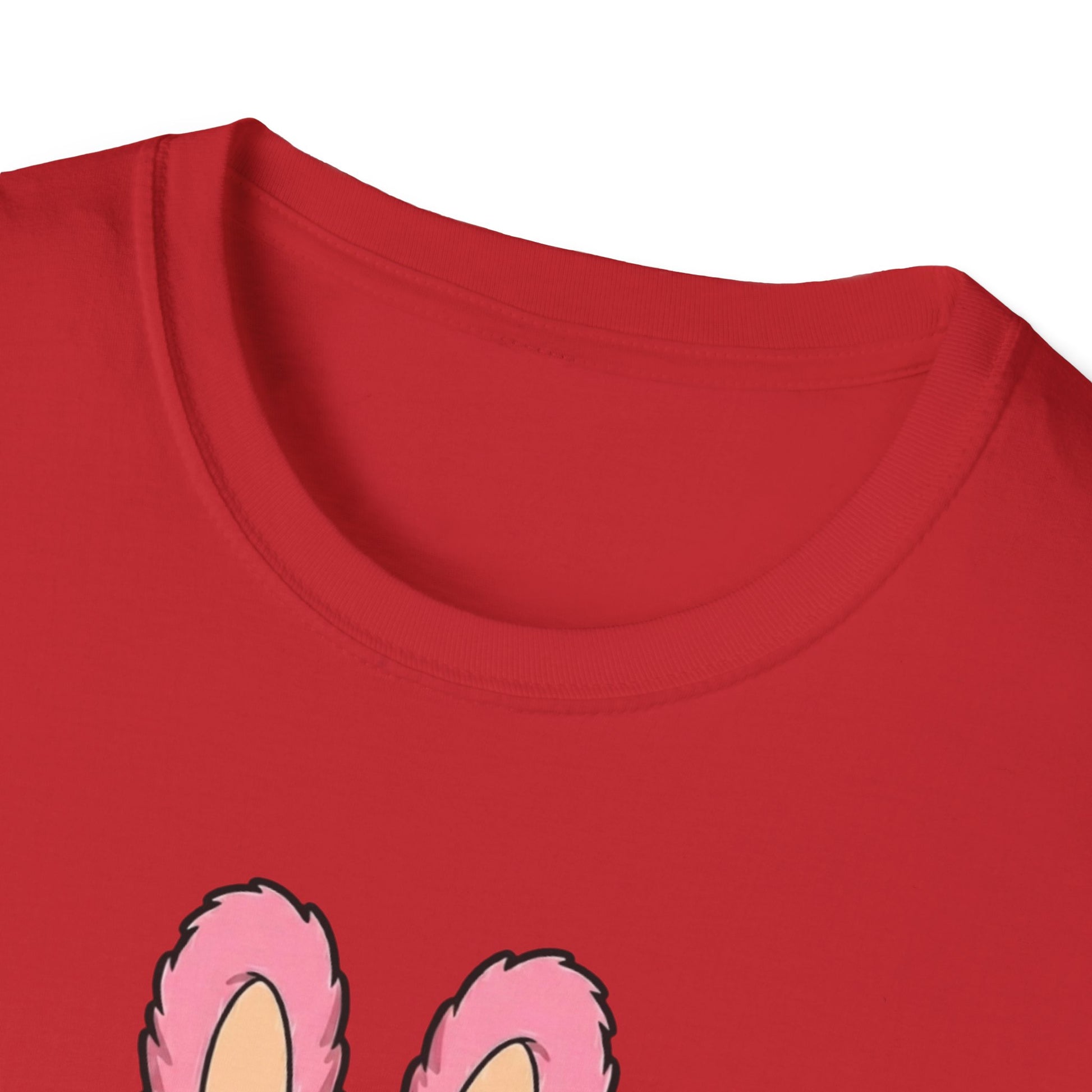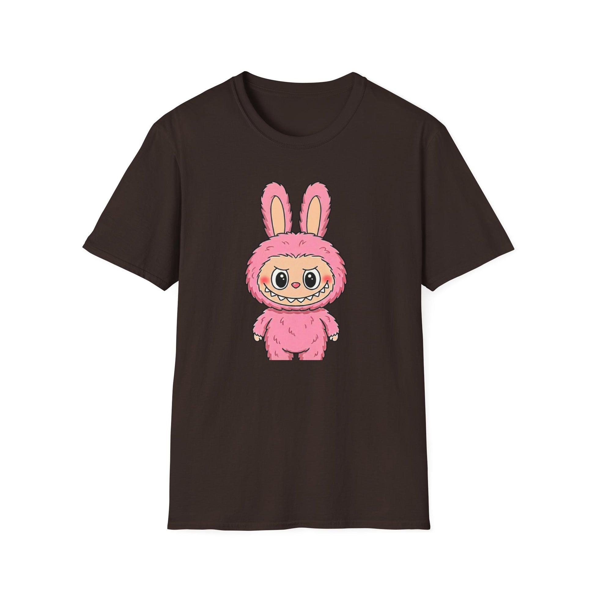 This lightweight crew-neck tee brings a playful, nostalgic energy to everyday wear. The soft ring-spun cotton feels smooth against skin while the clean, classic fit sits easily under a jacket or on its own. A charming pink bunny-costumed character sits front-and-center — whimsical, slightly mischievous, and made to spark smiles. The durable print methods keep colors bright through washes, and the tear-away label keeps the neckline comfortable. Wear it for lazy weekends, casual meetups, or anytime you want to add a little warmth and humor to your outfit.